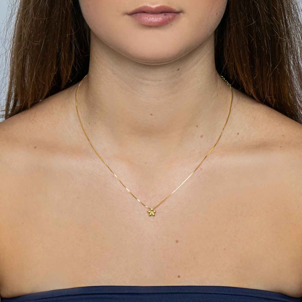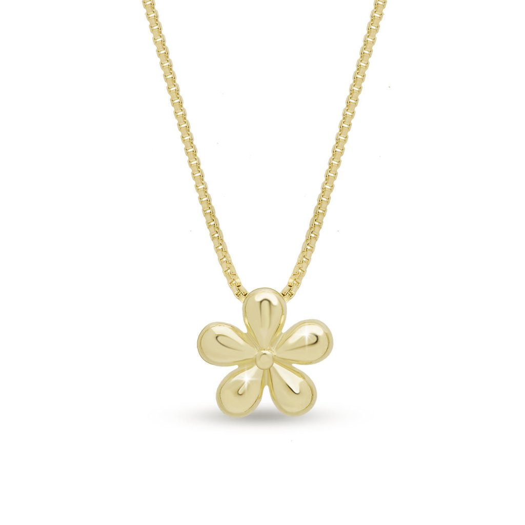 A 925/1000-es ezüstből készült, ragyogó sárga arany réteggel bevont, stílusos nyaklánc egyszerű, mégis bájos dizájnjával nyűgöz le. A virág alakú medál finoman lekerekített, fényes felületű szirmokkal rendelkezik, amelyek gyönyörűen tükrözik a fényt és elegáns benyomást keltenek.