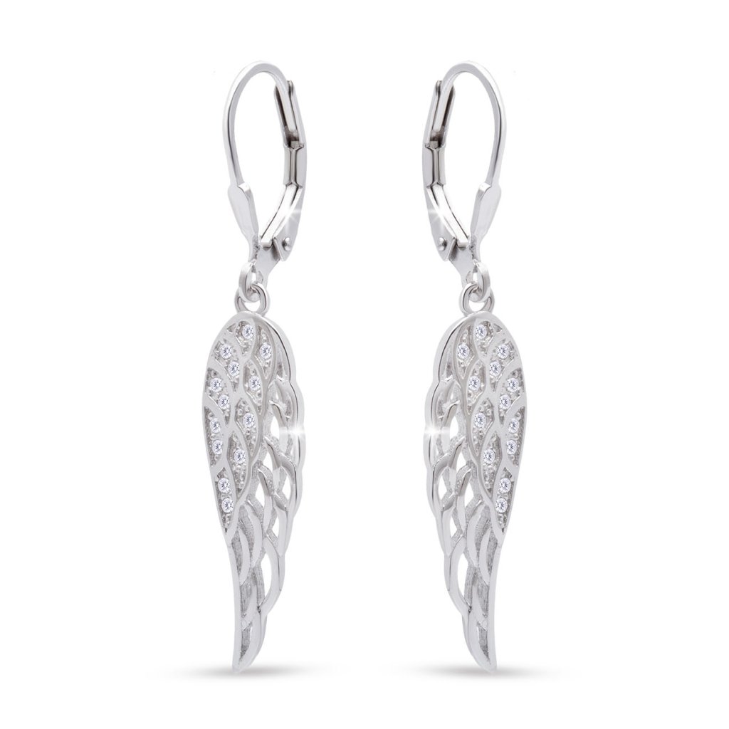 Ezüst színű, lógós fülbevaló angyalszárny motívummal 3635