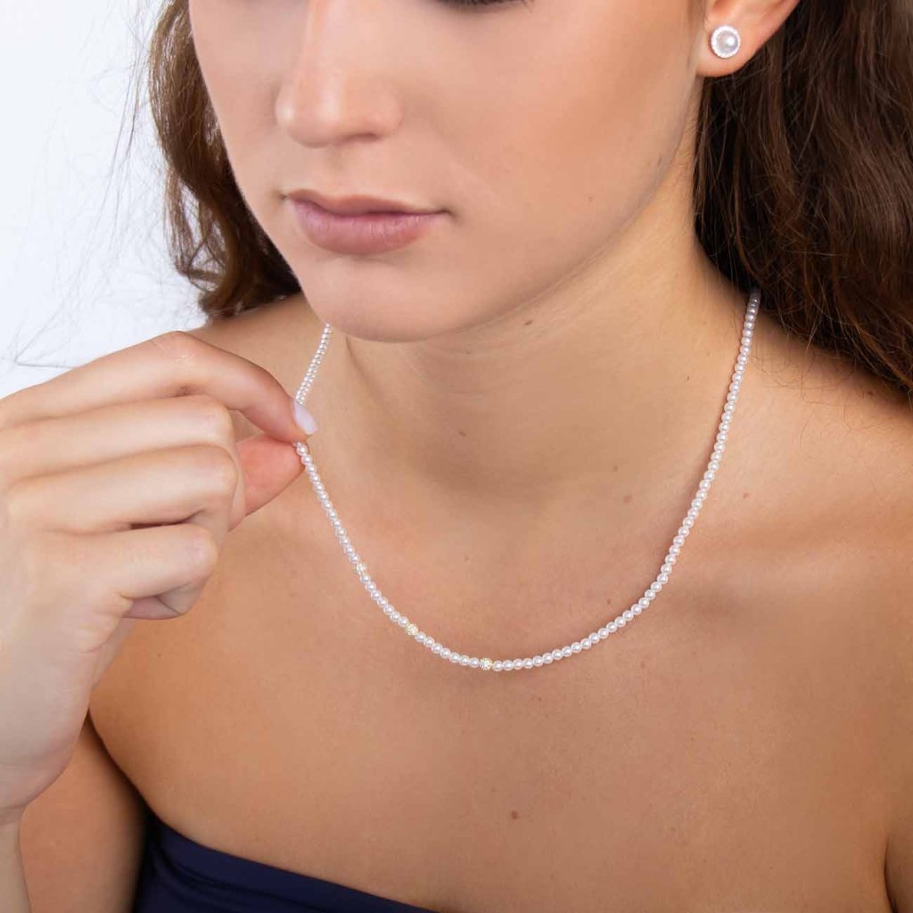 Ezüst színű gyöngyös nyaklánc - 14k arannyal bevonva 2513