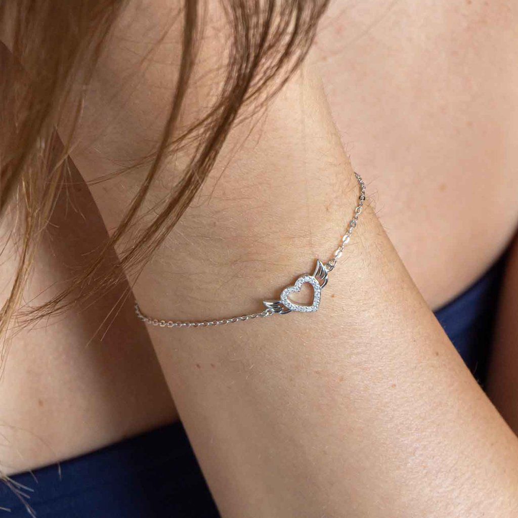 Ezüst szív alakú karkötő szárnyakkal 2845