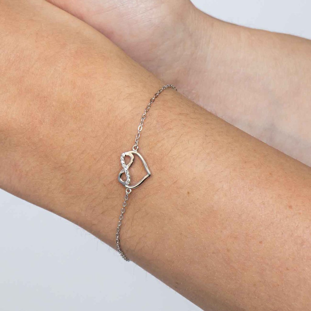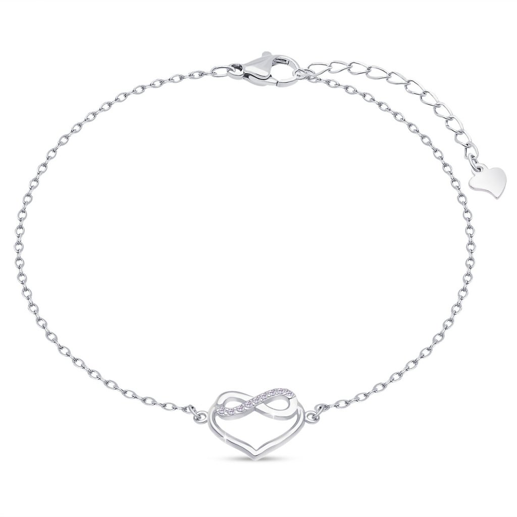 Finom karkötő romantikus motívummal, szívvel és végtelen jellel, apró, tiszta cirkóniákkal díszítve. Állítható hossz a kényelmes és rugalmas viseletért. Elegáns kiegészítő mélyebb jelentéssel – ideális ajándék szerelemből vagy hálából.
