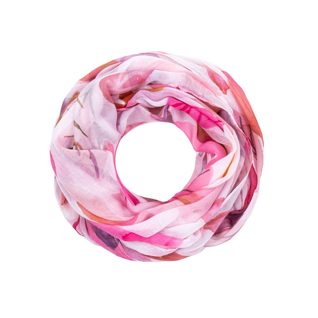 A finom, alagút alakú sál akvarell levélmintával rózsaszín, bézs és lila árnyalatokban romantikus és friss hatást kelt. A viszkóz és a pamut kombinációjának köszönhetően könnyű, légáteresztő és puha tapintású, így melegebb napokon is kényelmes viselet. A kör alak biztosítja a könnyű viselést, és a sál mindig megőrzi a volumenét és az elegáns megjelenését.