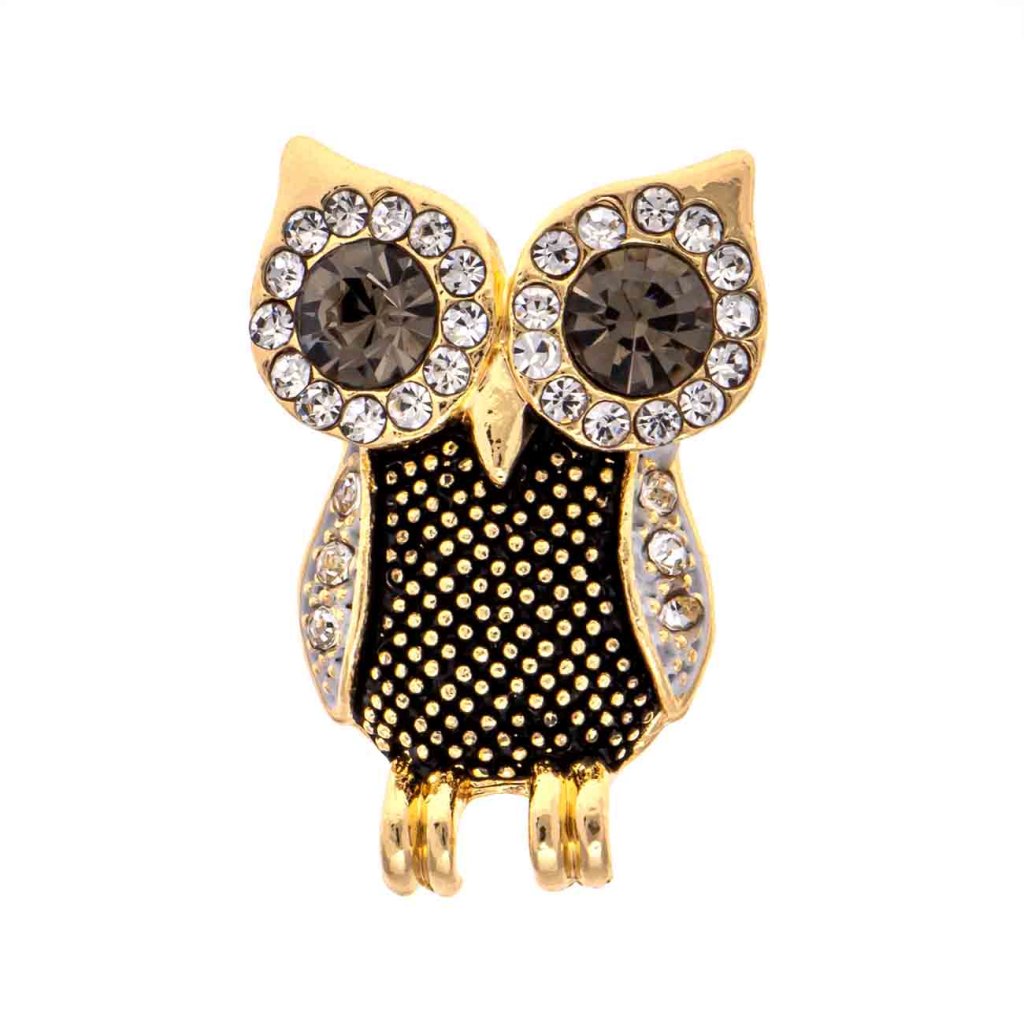 A bájos, bagoly alakú bross a bölcsességet és az eleganciát szimbolizálja. Kifejező szemeit füstös cirkónia kövek díszítik, melyeket áttetsző kövek kereteznek, csillogó tekintetet kölcsönözve neki. A bagoly testét finom textúrájú, színes zománc díszíti, amely játékos kontrasztot alkot a ragyogó kövekkel. Ez az ékszer eredeti hatást kelt, és elbűvölő kiegészítője lehet nemcsak zakónak vagy blúznak, hanem sálnak vagy kézitáskának is.