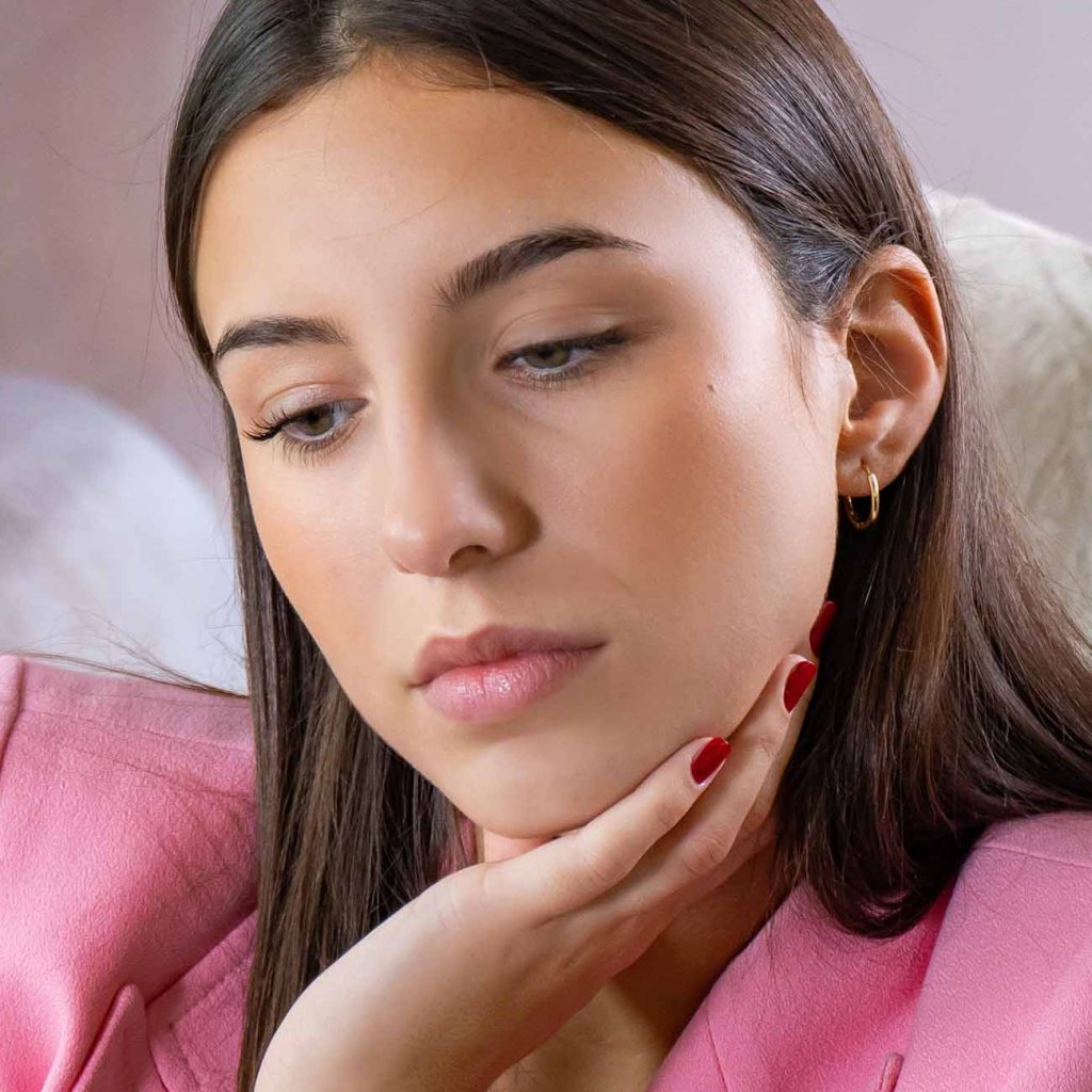 Decens, mégis stílusos kiegészítőt keres? Ezek a sima, fényes felületű karika fülbevalók egyszerűségükkel varázsolnak el. A kisebb méret kényelmes viseletet biztosít, míg az arany árnyalat kifinomult megjelenést kölcsönöz a fülbevalóknak.
