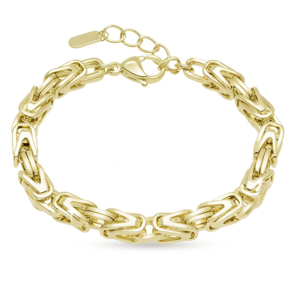 Ez a feltűnő karkötő precíz illesztésű szemekből áll, amelyek dinamikus és elegáns megjelenést kölcsönöznek neki. A csillogó aranyozott felület luxusérzetet kölcsönöz az ékszernek, és kiemeli időtlen karakterét. Ideális kiegészítő azok számára, akik egyediséget szeretnének csempészni stílusukba.
