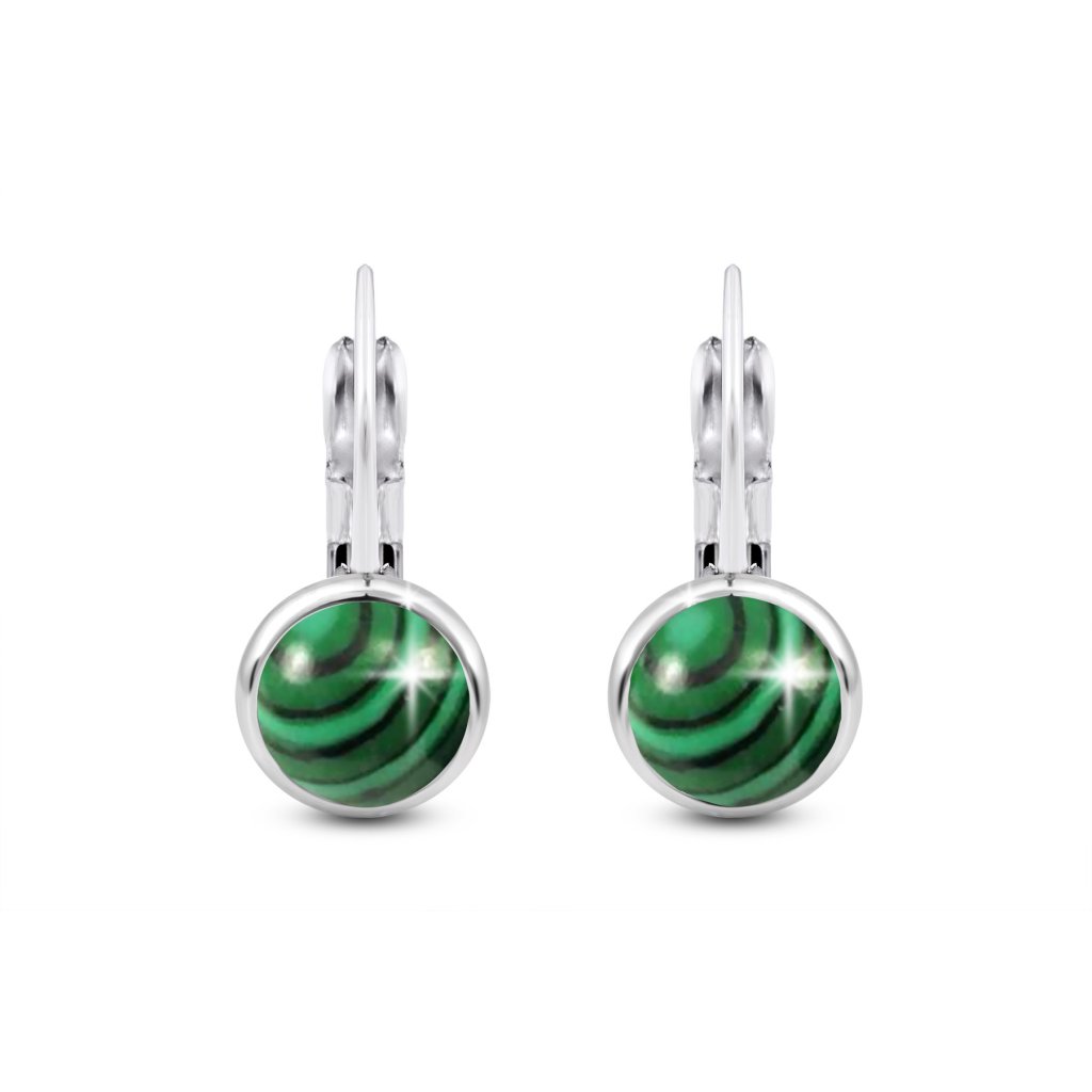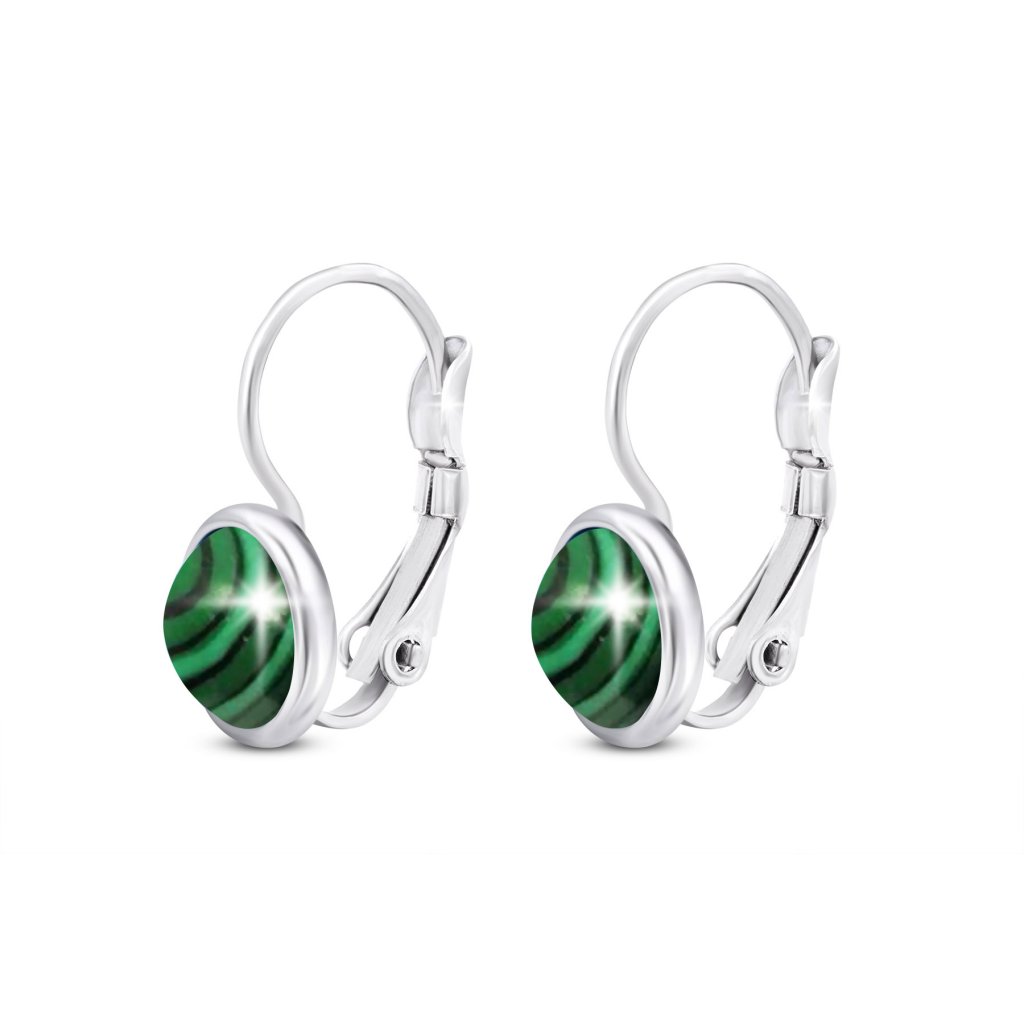 Sebészeti acél fülbevaló, csíkos zöld kő 1001556-2