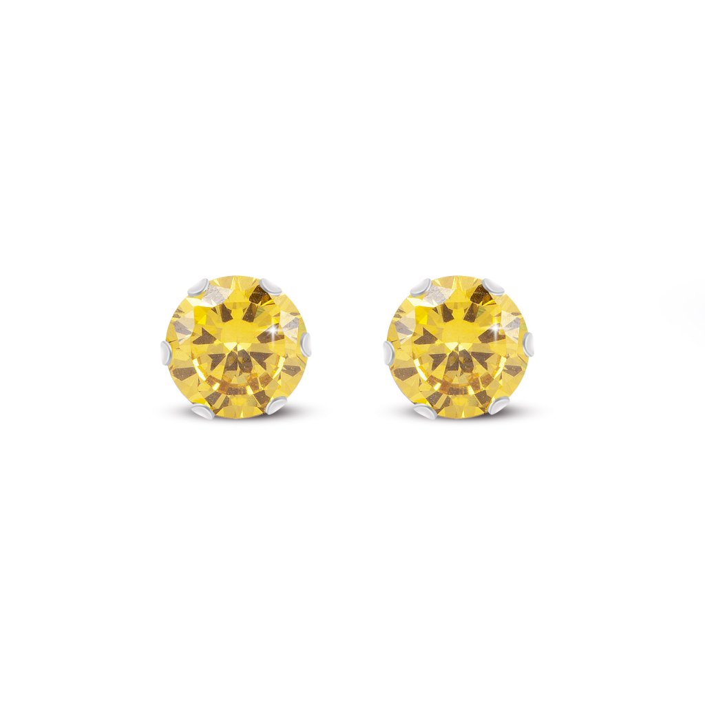 Sebészeti acél fülbevaló sárga cirkónia kővel.