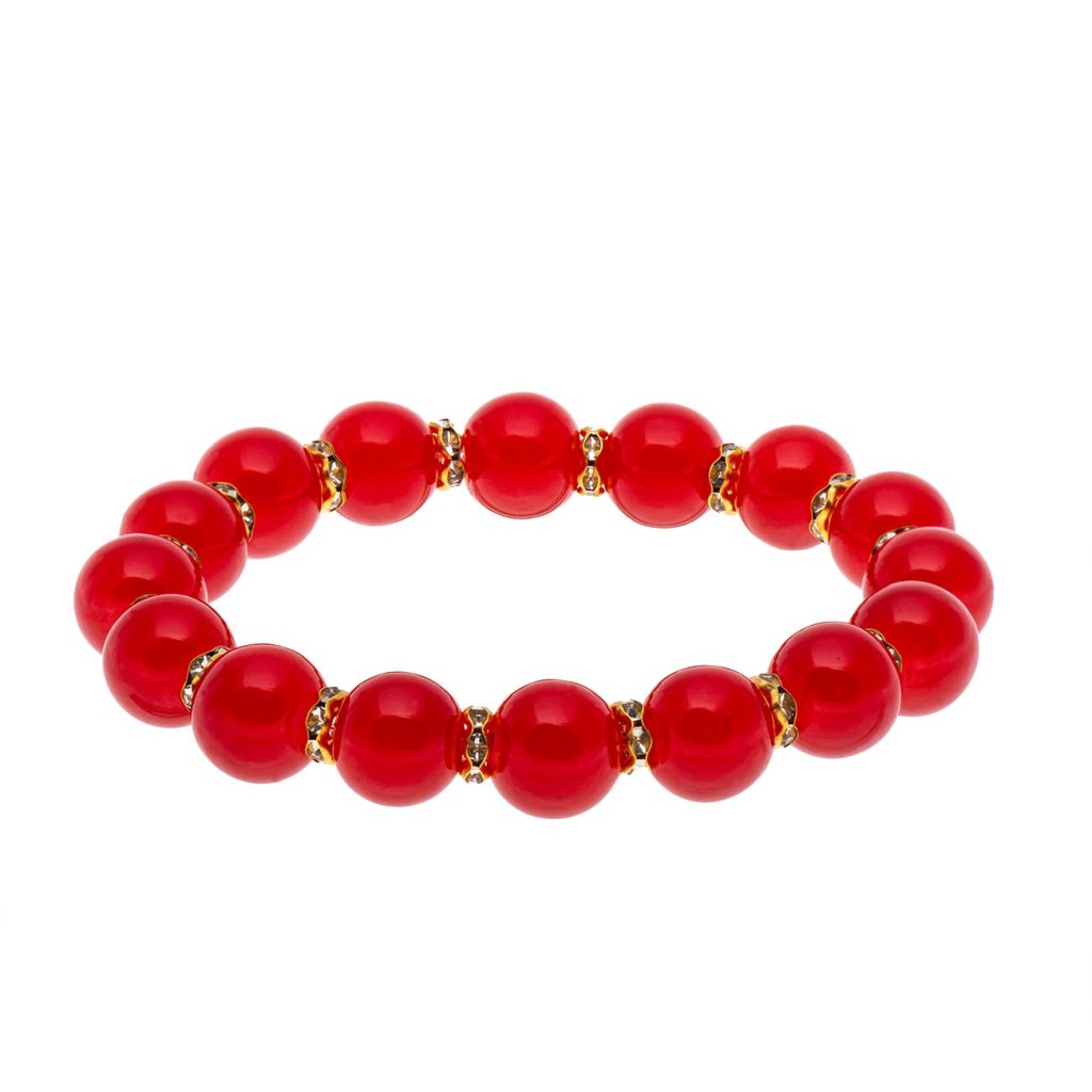 Vidám, játékos és egyben elegáns – ez a rugalmas karkötő kerek formájú üveggyöngyökből áll, melyeket finom kristályokkal díszített, arany színű díszítőelemek egészítenek ki. Minden karkötő kiemelkedik a színével vagy a színek kombinációjával, amelyek finoman, frissen vagy merészen hatnak – a választott árnyalattól függően.
