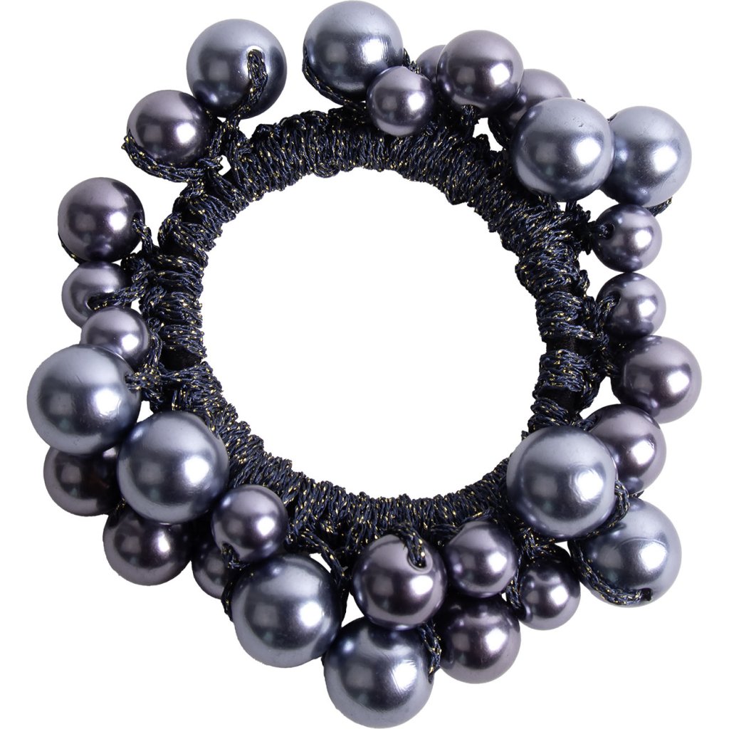 Vastag gumiszalag, különböző méretű gyöngyökkel díszítve. A gumipánt jól tartja a durva és a finom hajat.