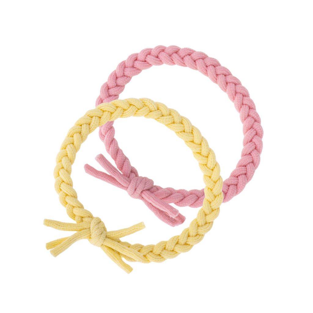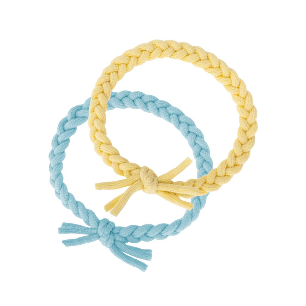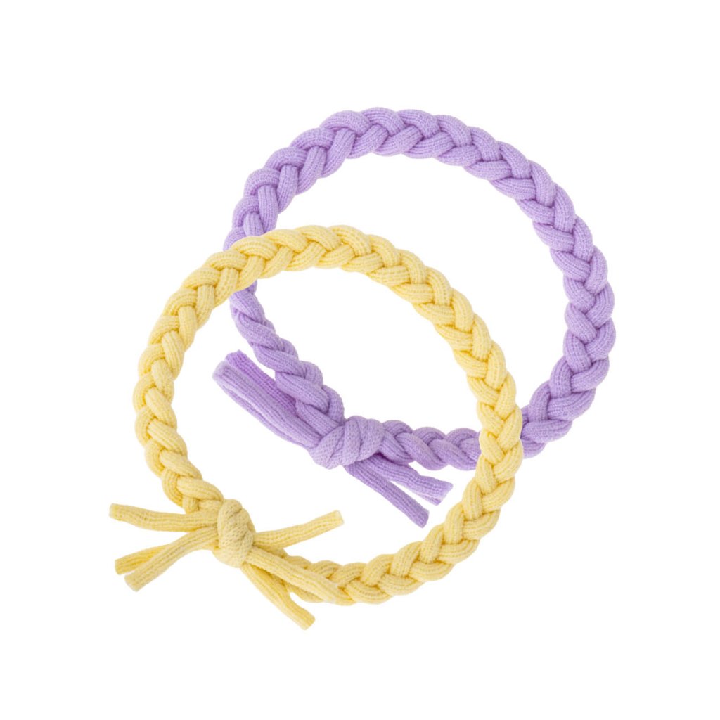 Ezek a stílusos, puha textil anyagból készült, kötött hajgumik remek választásnak bizonyulnak a mindennapi viselethez. Két különböző szín kombinációjából álló, játékos dizájnjuk eredeti megjelenést kölcsönöz a frizurának, és nagyszerűen mutat mind a gyermekek, mind a felnőttek hajában. Minden hajgumi azonos anyagból készült masnival van ellátva.