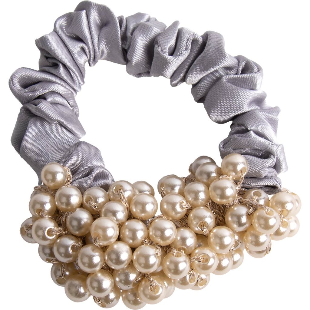 Vastag gumiszalag ezüst színben, arany gyöngyökkel díszítve. A gumipánt jól tartja a durva és a finom hajat.