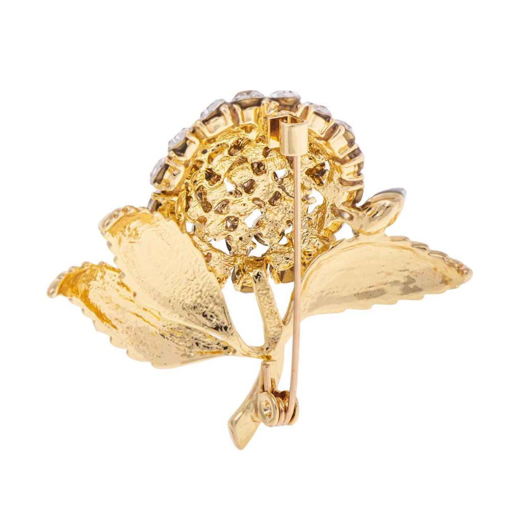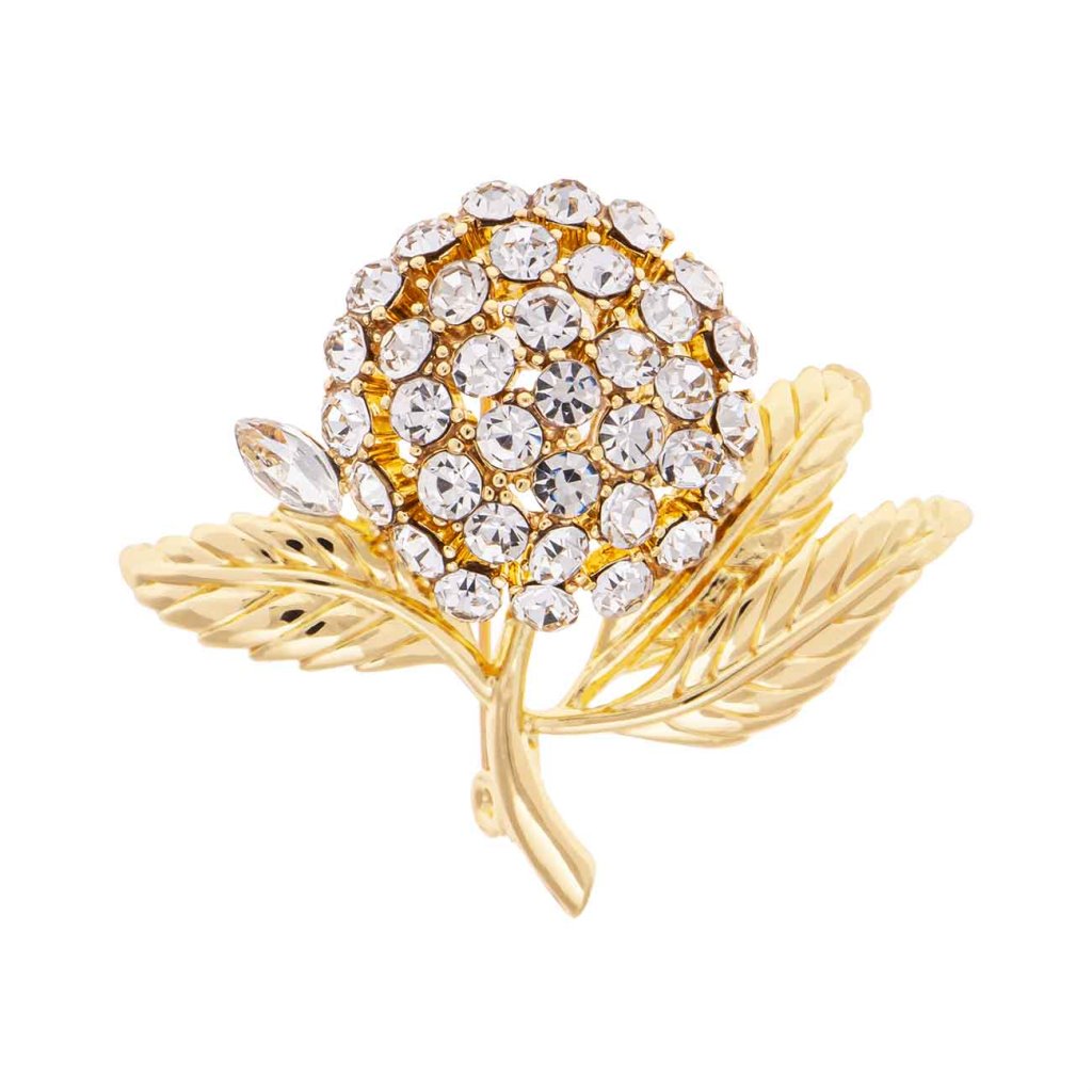 A bűbájos, virágzó virág alakú, leveles bross az elegancia és a báj szimbóluma. A virágfejet bőségesen díszítik tiszta, csillogó cirkóniák, amelyek minden mozdulatnál gyönyörűen ragyognak. A finom erezetű, részletgazdag levelek valósághű és egyben luxus megjelenést kölcsönöznek az ékszernek. A praktikus bross tűs rögzítésnek köszönhetően a bross ruhához, zakóhoz, kabáthoz és sálhoz is illik, és feltűnő kiegészítővé válik.