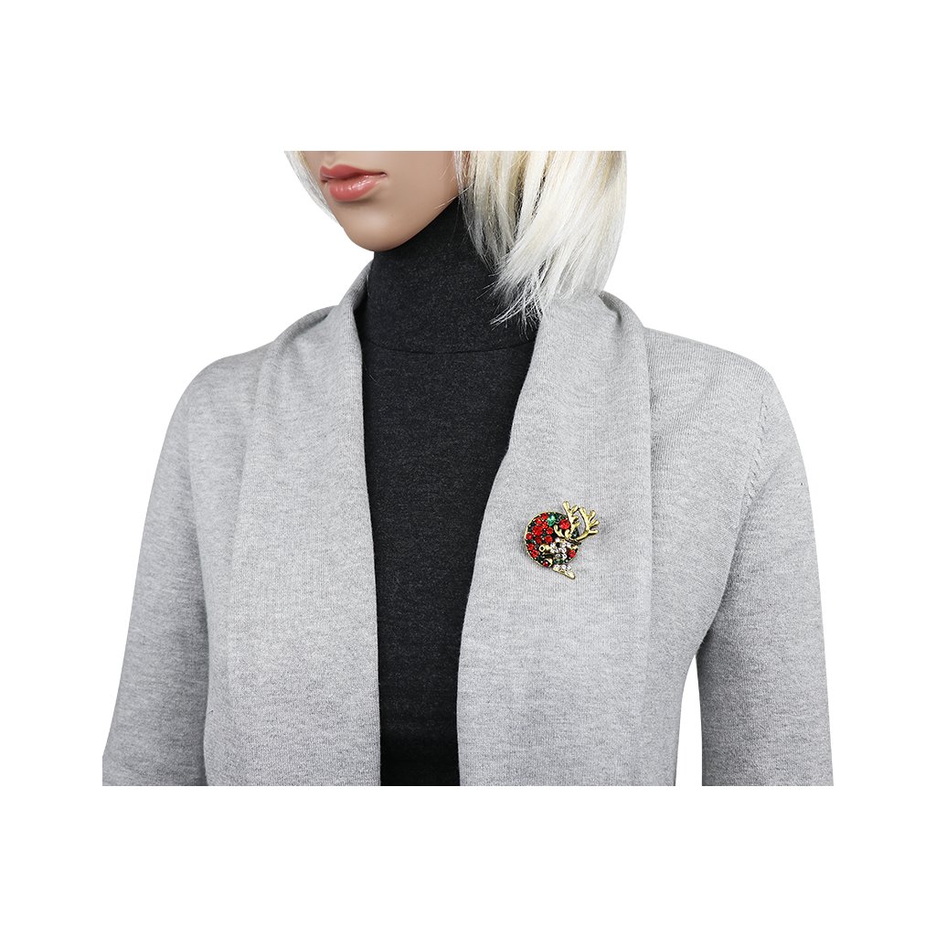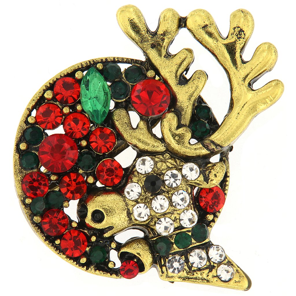 - Karácsonyi bross cirkóniával - rénszarvas színes kövekkel, arany színű.