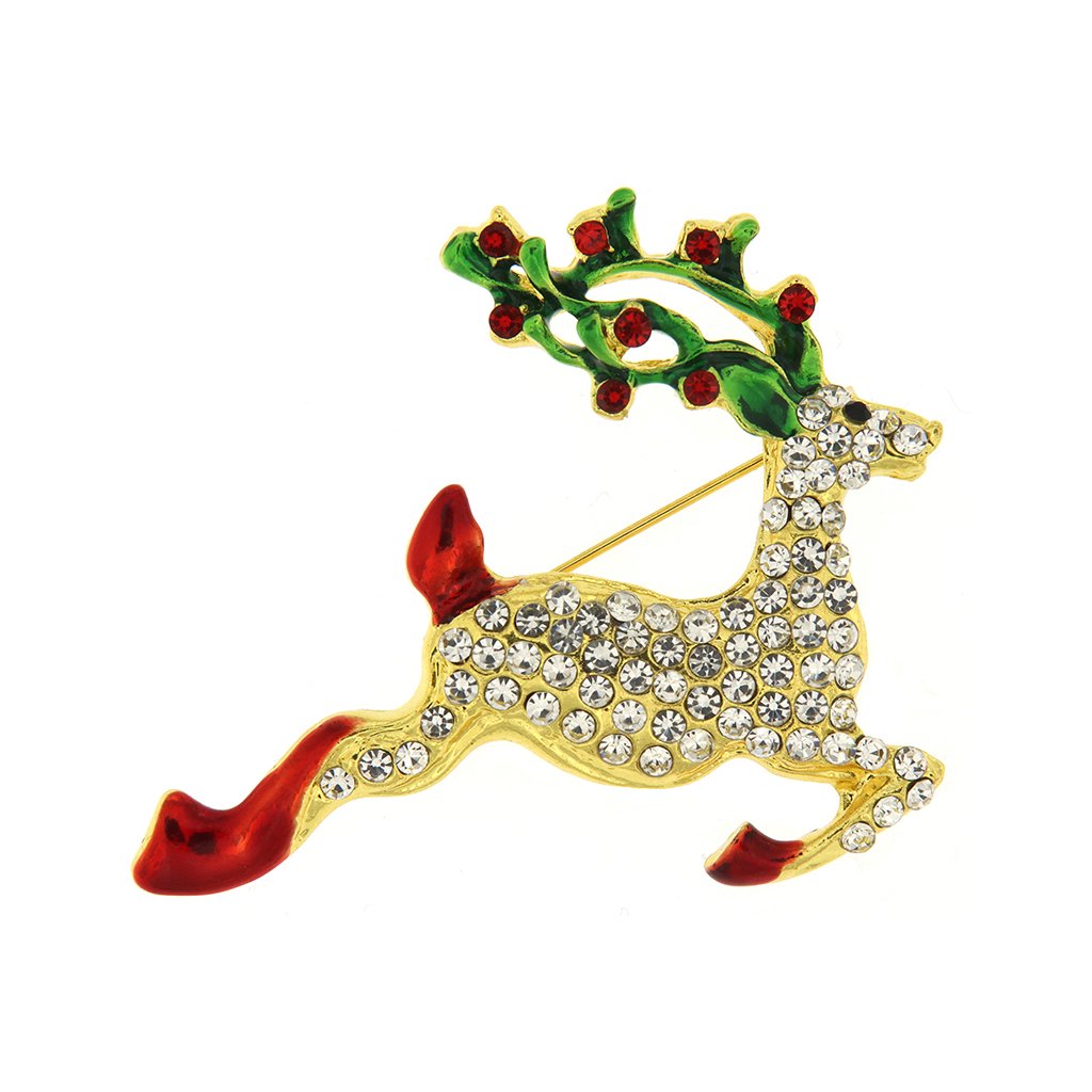 - Karácsonyi bross cirkónia kövekkel - repülő rénszarvas, arany színű.