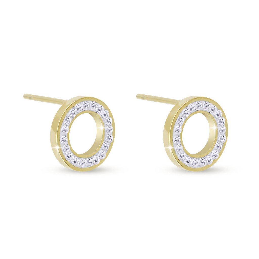 Aranyozott fülbevaló 14k arannyal, sebészeti acélból, tiszta cirkóniákkal kirakva. A fülbevalók gyönyörűen ragyogóak és nagyon elegánsak.