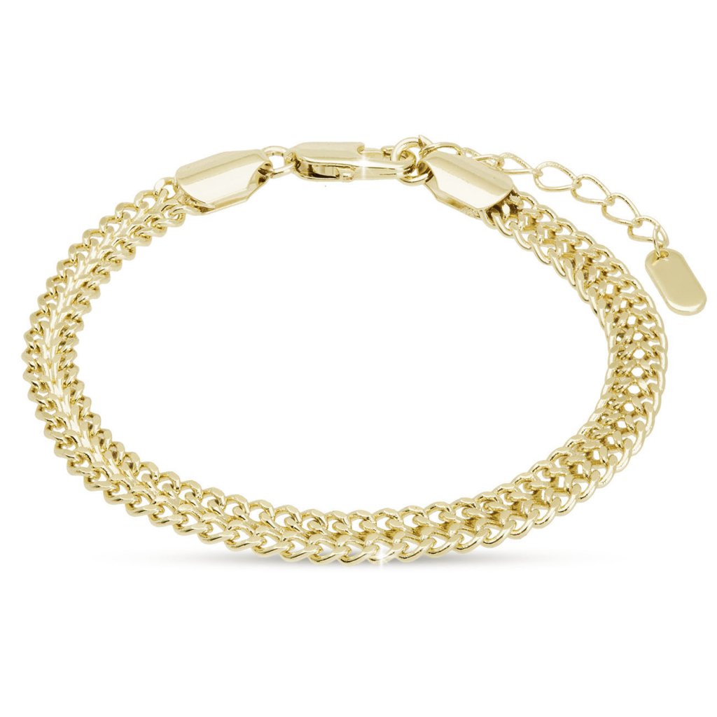 A finoman szőtt, fényes felületű karkötő visszafogott dizájnjával és könnyedségével tűnik ki. Az állítható hosszúságnak köszönhetően tökéletesen illeszkedik minden csuklóra. A 14 karátos aranyozás kiemeli elegáns megjelenését és univerzális felhasználhatóságát a mindennapi viselethez.