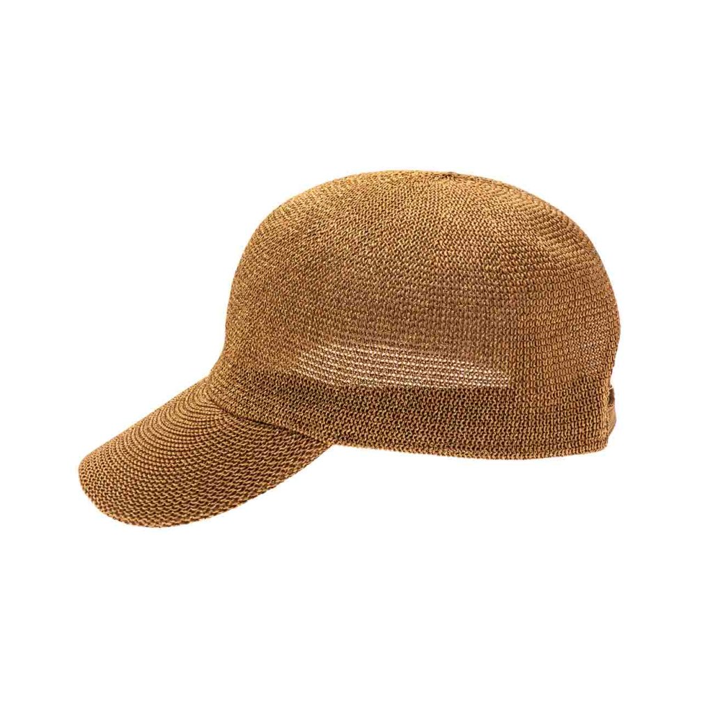 A stílusos, természetes barna színű kötött baseball sapka finom arany szállal van átszőve, ami elegáns megjelenést kölcsönöz neki. Ötvözi a sportos szabást a könnyed nyári dizájnnal, és a légáteresztő anyagnak köszönhetően a forró napokon is kényelmes. A praktikus méretbeállítás a hátoldalon biztosítja, hogy tökéletesen illeszkedjen mindenkihez.