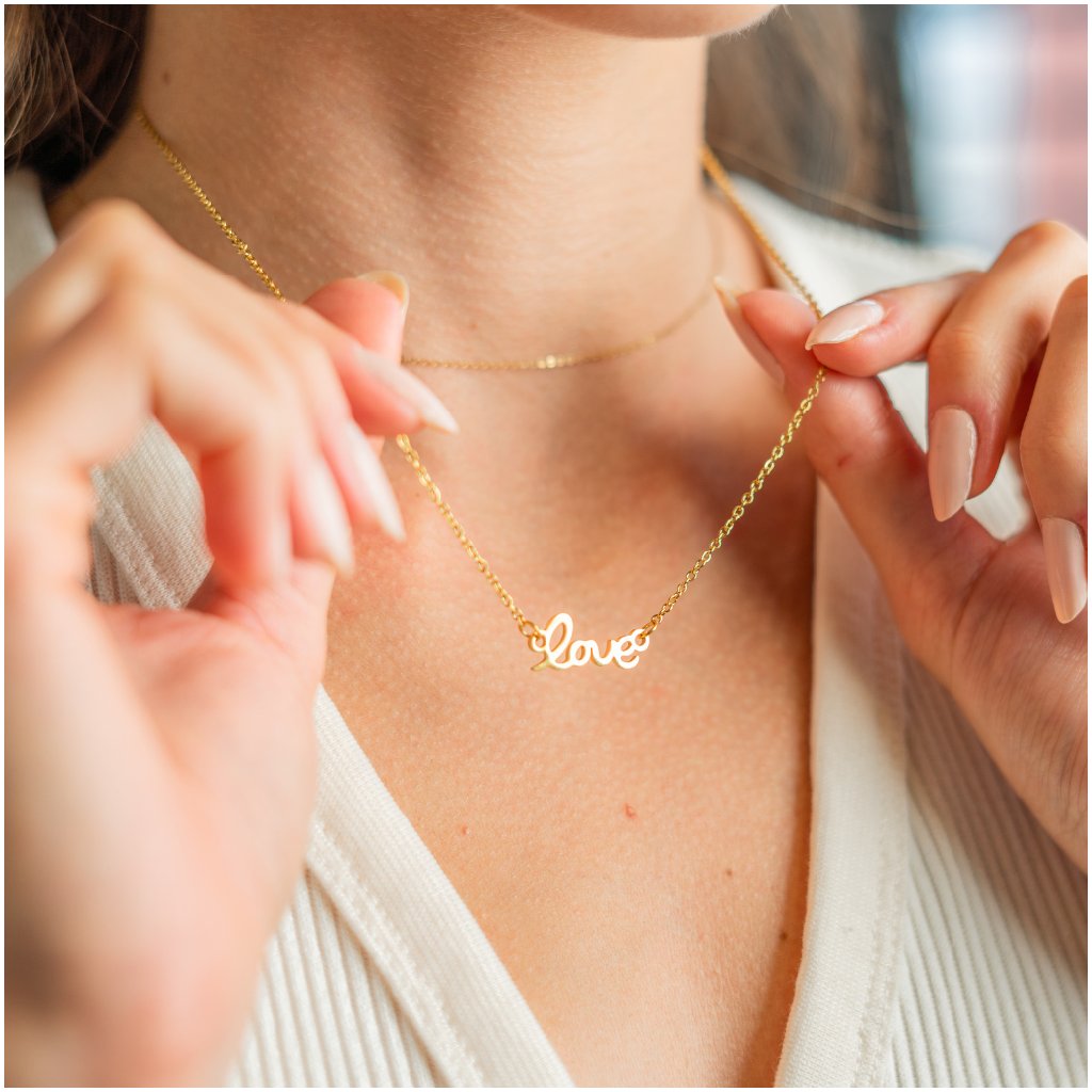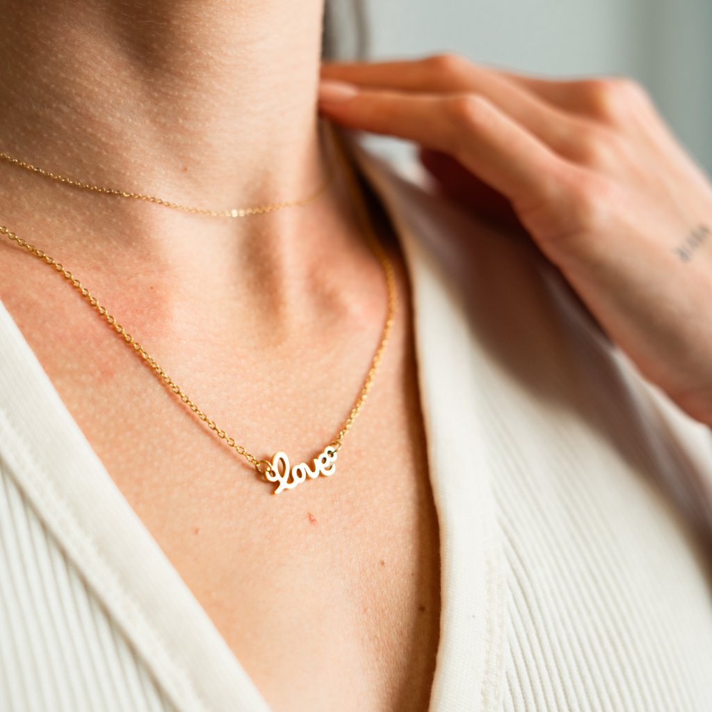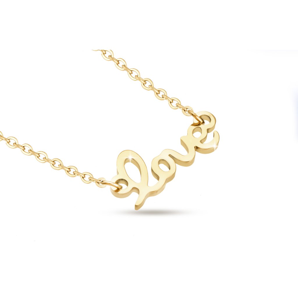 Sebészeti acél nyaklánc, 14 karátos arannyal bevonva, szerelem felirattal 3001612-1