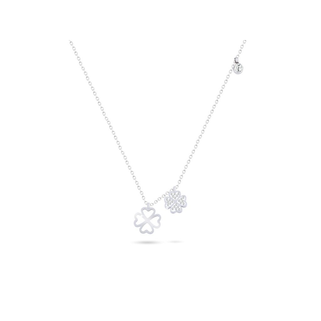 Nemesacél nyaklánc + medál, négylevelű lóhere cirkónia kövekkel 3001319