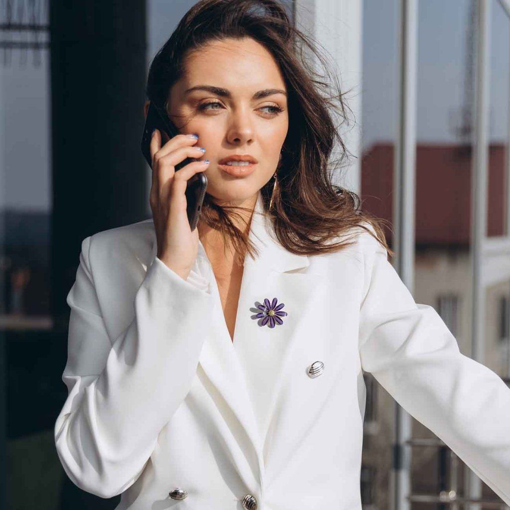 - Lila virágos bross .