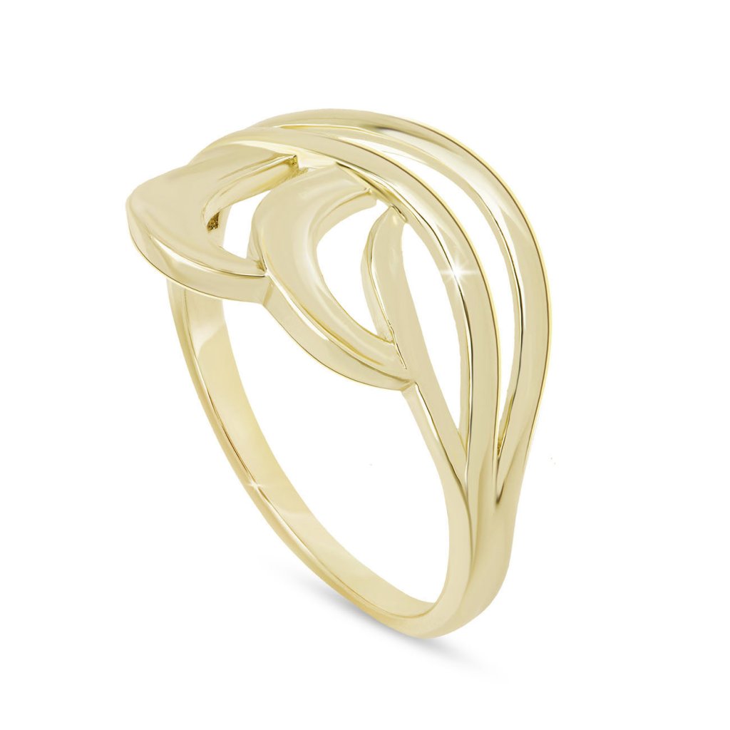 Elegáns gyűrű finoman összefonódó, stilizált levélre emlékeztető dizájnnal, tökéletes kiegészítője a természet és a modern minimalizmus szerelmeseinek. A könnyű, légies forma és a 14 karátos aranyból készült fényes felület kifinomult megjelenést kölcsönöz az ékszernek.