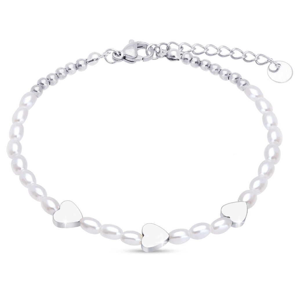 Nemesacél karkötő szívecskékkel és gyöngyökkel 2002490