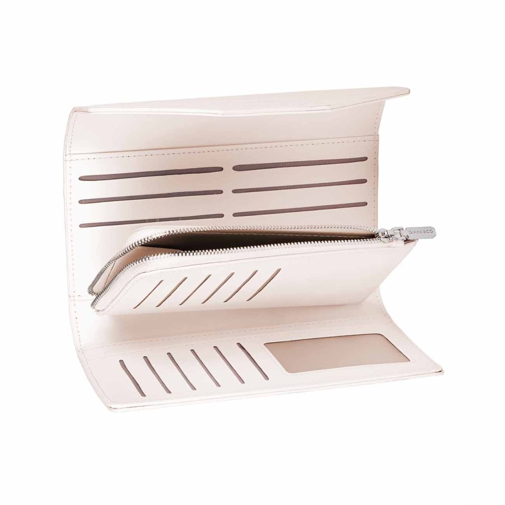 A Diana & Co Firenze márkájú, időtlen dizájnnal rendelkező stílusos pénztárca a praktikum és az elegancia ideális kombinációja. A finoman strukturált, minőségi PU anyagból készült felület luxus hatást kelt, míg az átgondolt belső elrendezés elegendő helyet kínál a legfontosabb dolgok számára.