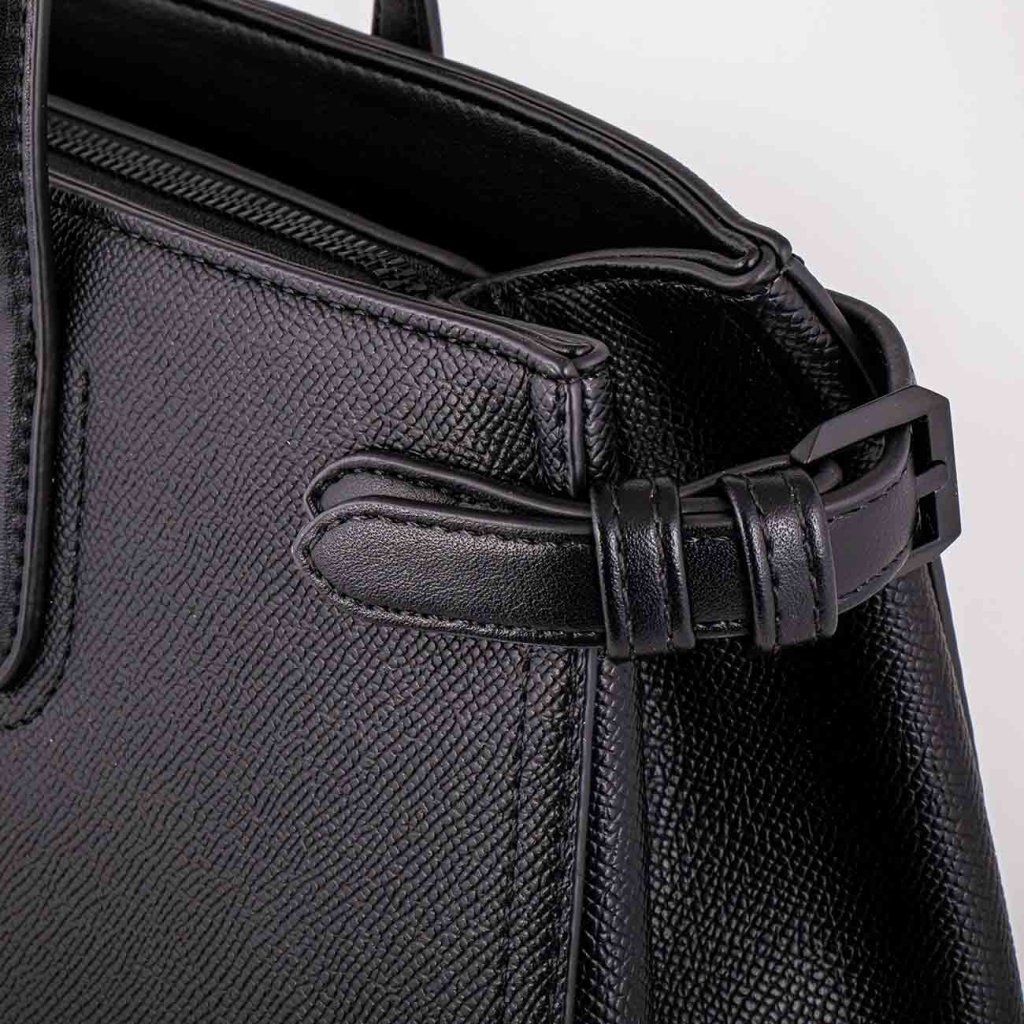 - Oldalsó pántok dekoratív csattal a táska formájának alakításához