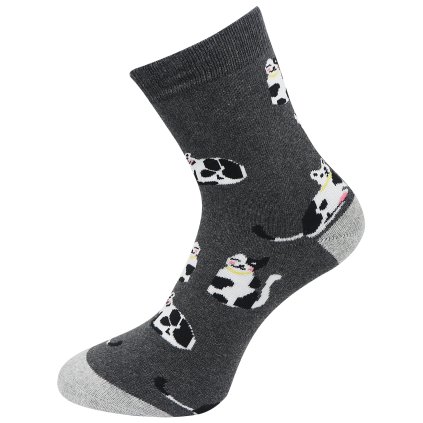 Női frottír zokni fekete-fehér macska mintával NV8865, rózsaszín színben 9001499-4