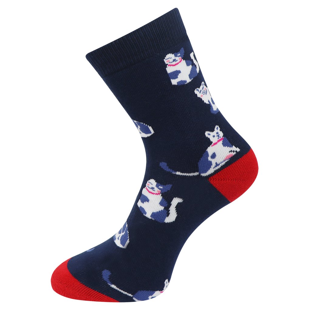 Női frottír zokni kék-fehér macska mintával NV8865, sötétkék színben 9001499-3