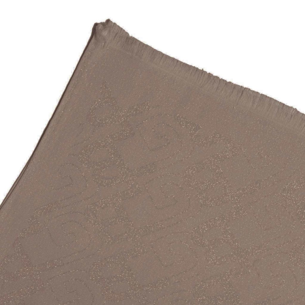 Bemutatunk egy női könnyű sálat barna selyemből, BG betűkkel, fényes aranyszállal díszítve - tökéletes kiegészítő minden hölgy számára, aki le akar nyűgözni. A sál végein díszes fodrosodás található. A sál vékony és légies anyagból készült. Nagyon praktikus és elegáns darab. Gyönyörű mintája fényes cérnával biztosítja, hogy az emberek figyelmét felkelti, függetlenül attól, hogy milyen ruhát viselsz! Tökéletes darab tavasztól télig, hogy tetszés szerint a nyakad köré kösd.