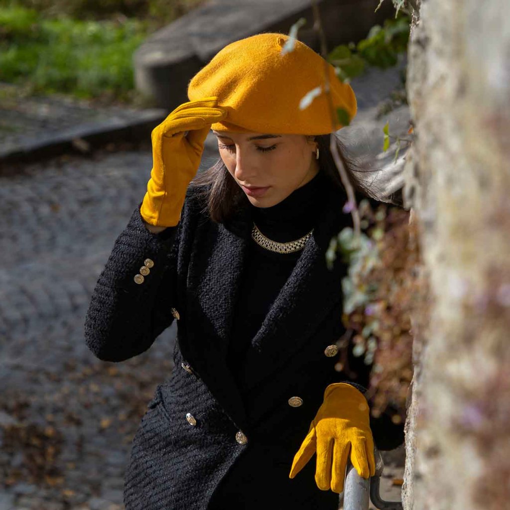 Női kasmír barett mustársárga 7100276-14