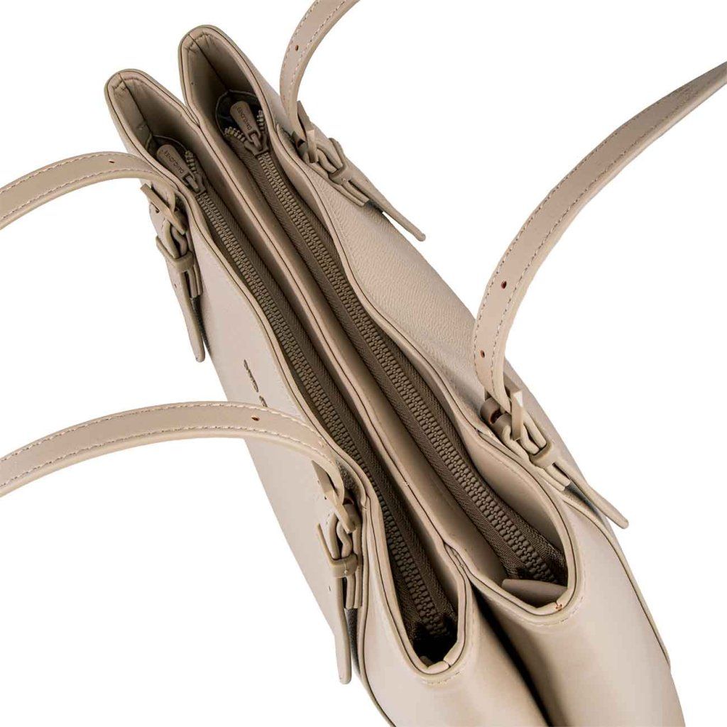 Időtlen táska, amely egyesíti a minimalista megjelenést a mindennapi maximális praktikummal. A precíz kidolgozás és az anyag finom textúrája luxus hatást kelt, miközben kényelmes viseletet és elegendő helyet biztosít az alapvető holmiknak.