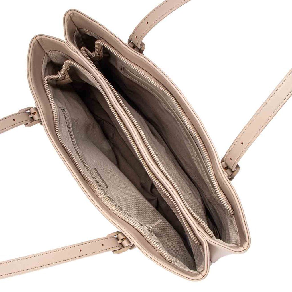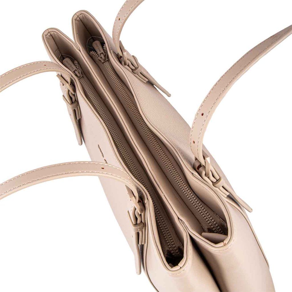 Időtlen táska, amely egyesíti a minimalista megjelenést a mindennapi maximális praktikummal. A precíz kidolgozás és az anyag finom textúrája luxus hatást kelt, miközben kényelmes viseletet és elegendő helyet biztosít az alapvető holmiknak.