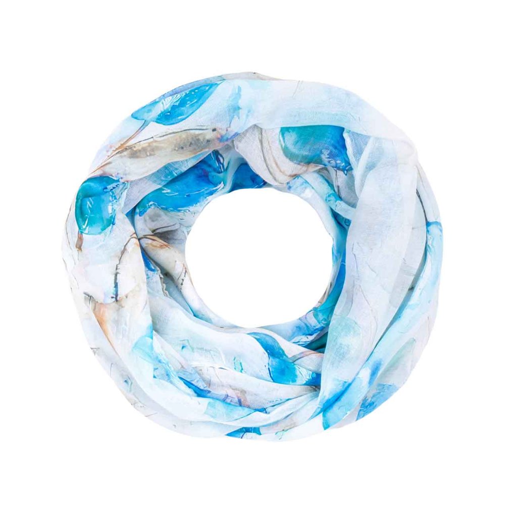 Az elegáns, csőszerű sál finom akvarell tulipán motívummal, a kék és bézs árnyalataiban, friss, romantikus és kifinomult hatást kelt. A viszkóz és a pamut kombinációjának köszönhetően könnyű, puha tapintású és légáteresztő, így egész nap kényelmes viseletet biztosít. A sál kör alakja biztosítja a könnyű elrendezést, mindig tartja a formáját, és finom virágos akcentust ad a megjelenésednek.