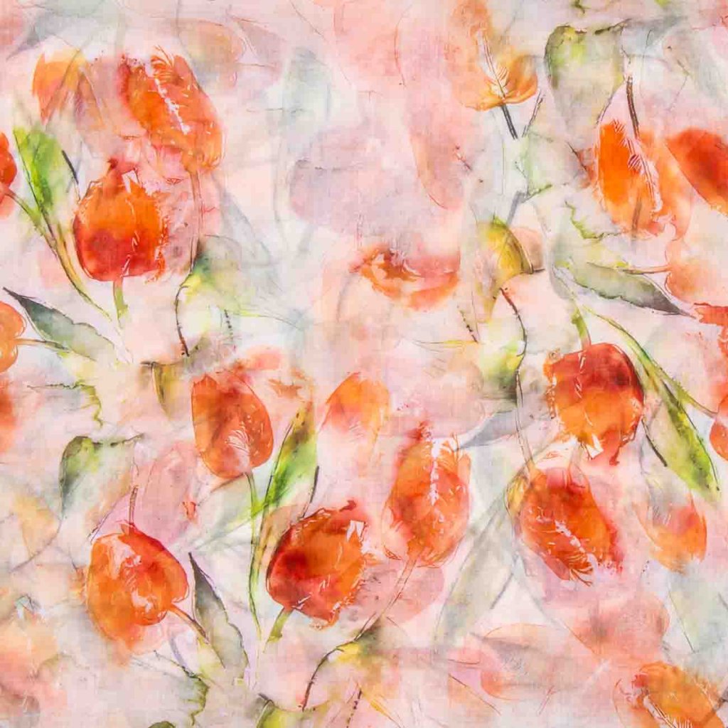 Női könnyű sál narancssárga tulipánokkal 7200763-4