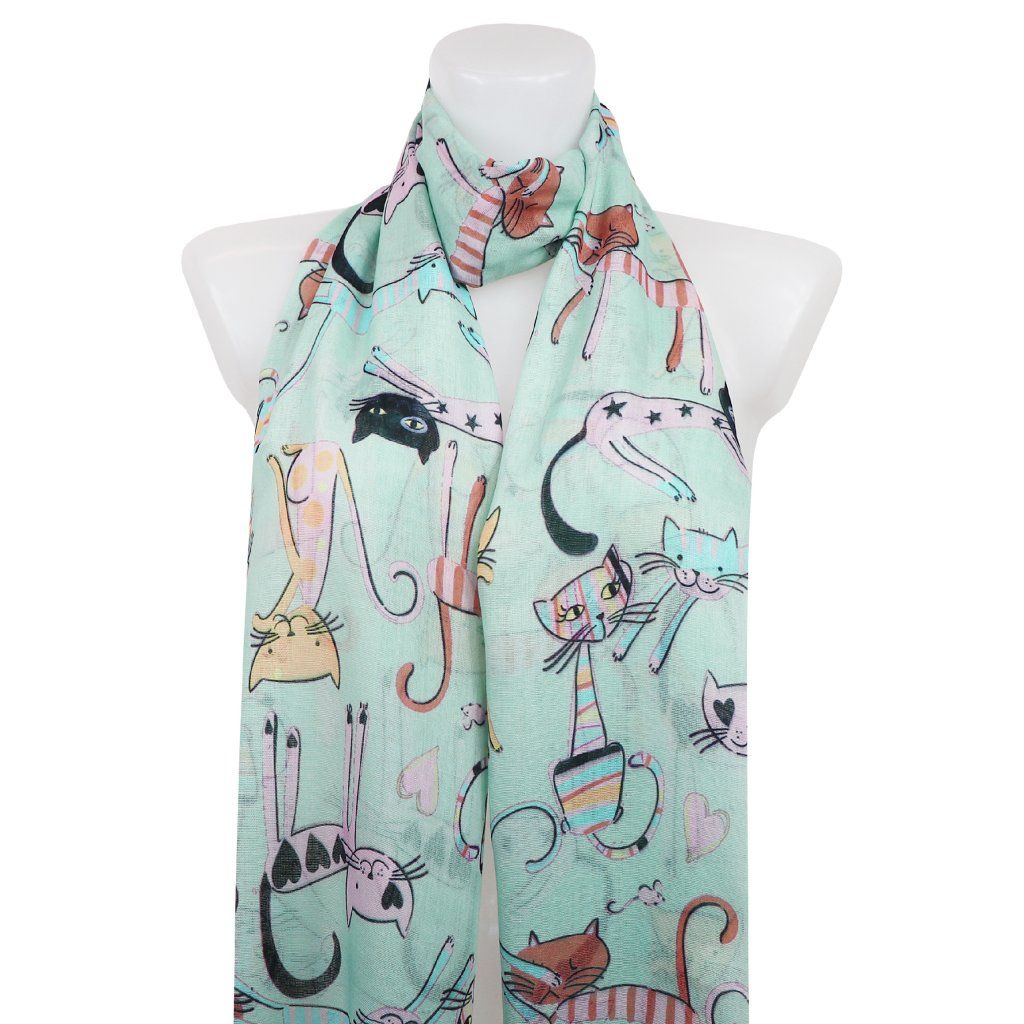 Női könnyű, téglalap alakú sál macskákkal 378-5 - mentazöld 7200607-7