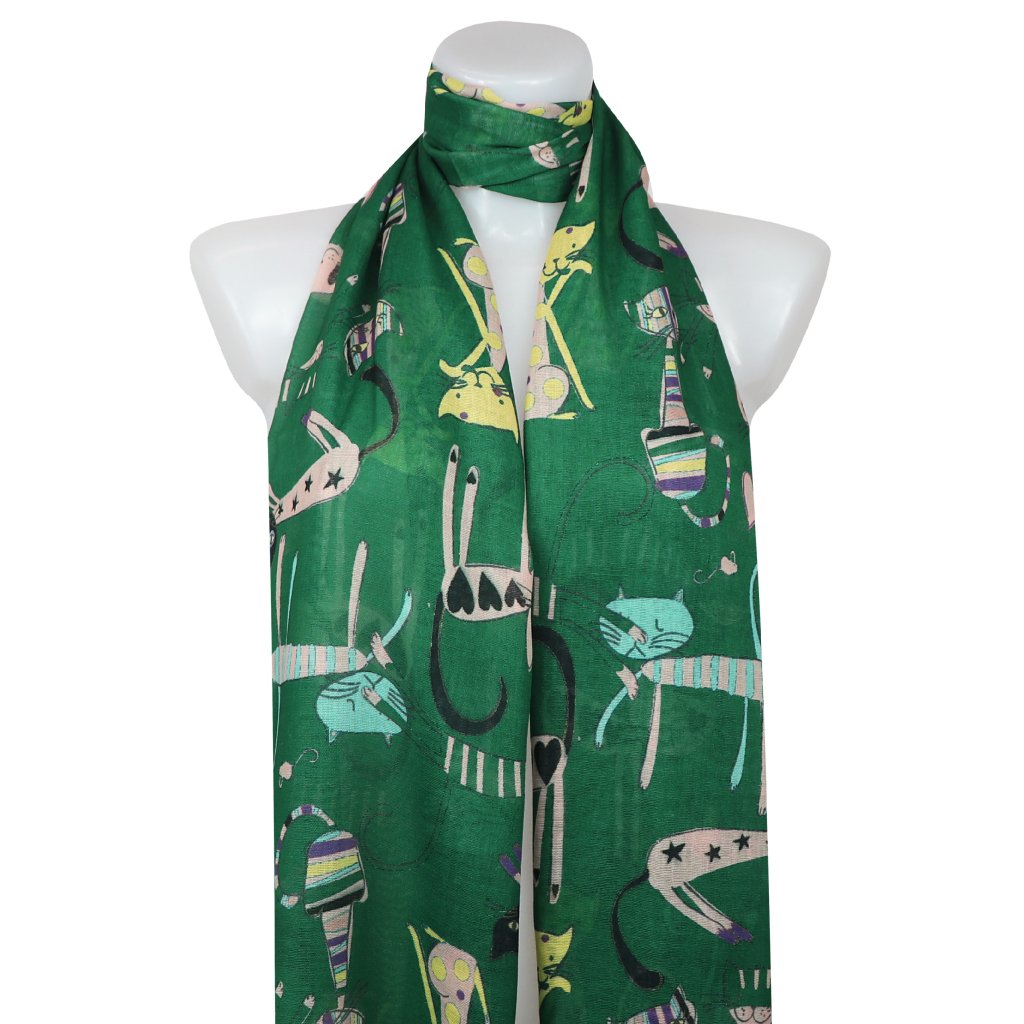 Női könnyű, téglalap alakú sál macskákkal 378-5 - zöld 7200607-2
