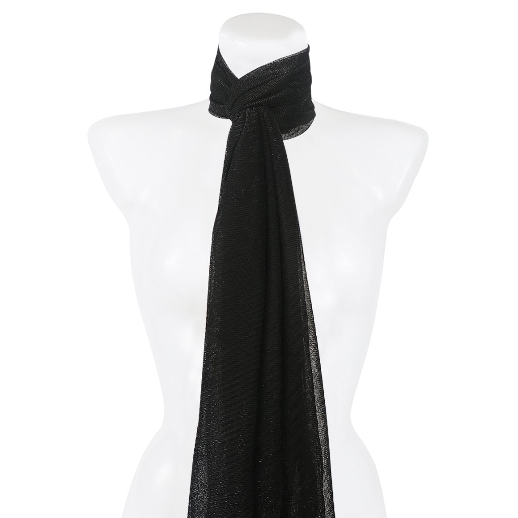 Női könnyű, téglalap alakú WJ-343 sál fényes szállal - fekete színű 7200653