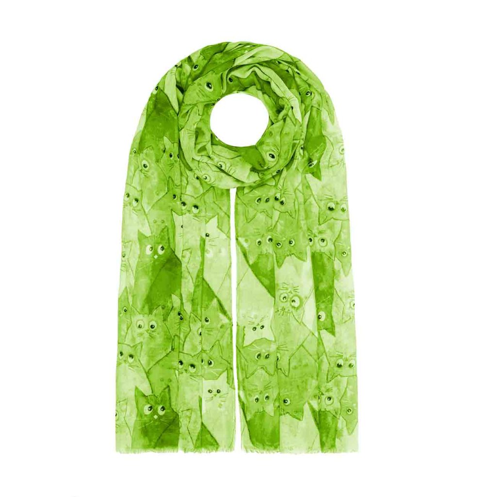 Dobd fel a szetted egy eredeti, játékos macskamintás, élénkzöld árnyalatú sállal. A könnyű és kellemes anyag gyönyörűen omlik le, és légies megjelenést kölcsönöz a sálnak, így a mindennapi viselet és a különleges alkalmak kedvelt kiegészítőjévé válik.