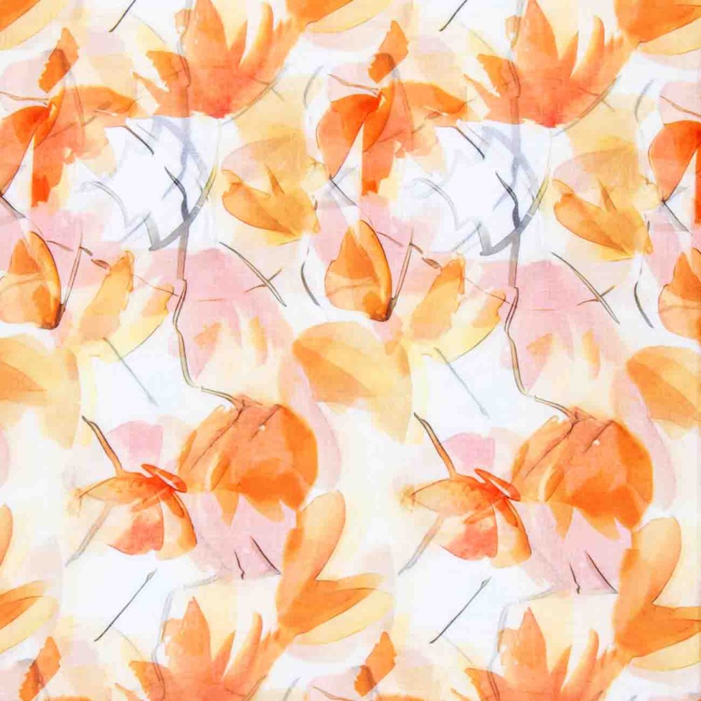 Könnyű, alagút alakú terem finom narancssárga árnyalatokban, akvarell virágmintával, romantikus és friss hatást kelt. A viszkóz és a pamut kombinációjának köszönhetően könnyű, kellemesen légáteresztő és puha tapintású, így melegebb napokon is kényelmes viselet. A kör alaknak köszönhetően könnyen elrendezhető, szépen tartja a formáját, és finom, nőies bájt kölcsönöz a megjelenésednek.
