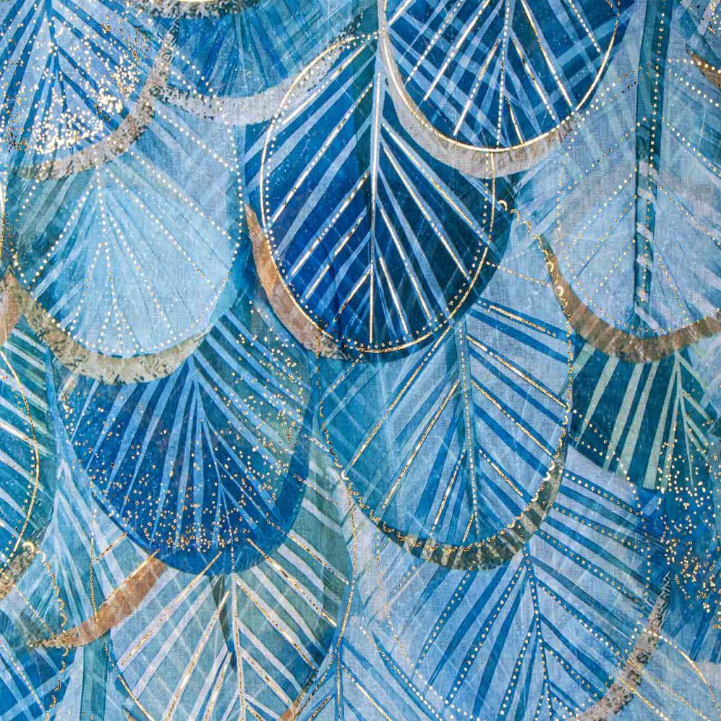 Női könnyű sál arany nyomattal kék színben 7200827-2