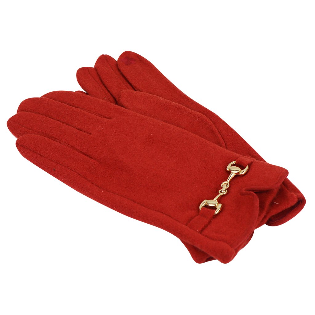 Női kötött kesztyű arany csattal - téglavörös színű 9001510-8