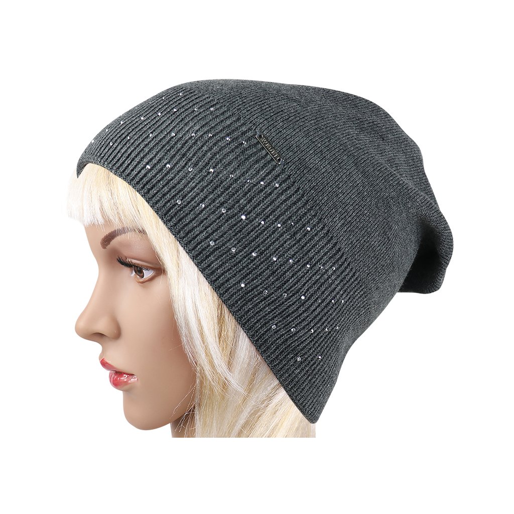 Női kötött Wrobi sapka fényes kövekkel, krémszínű 7100377-15