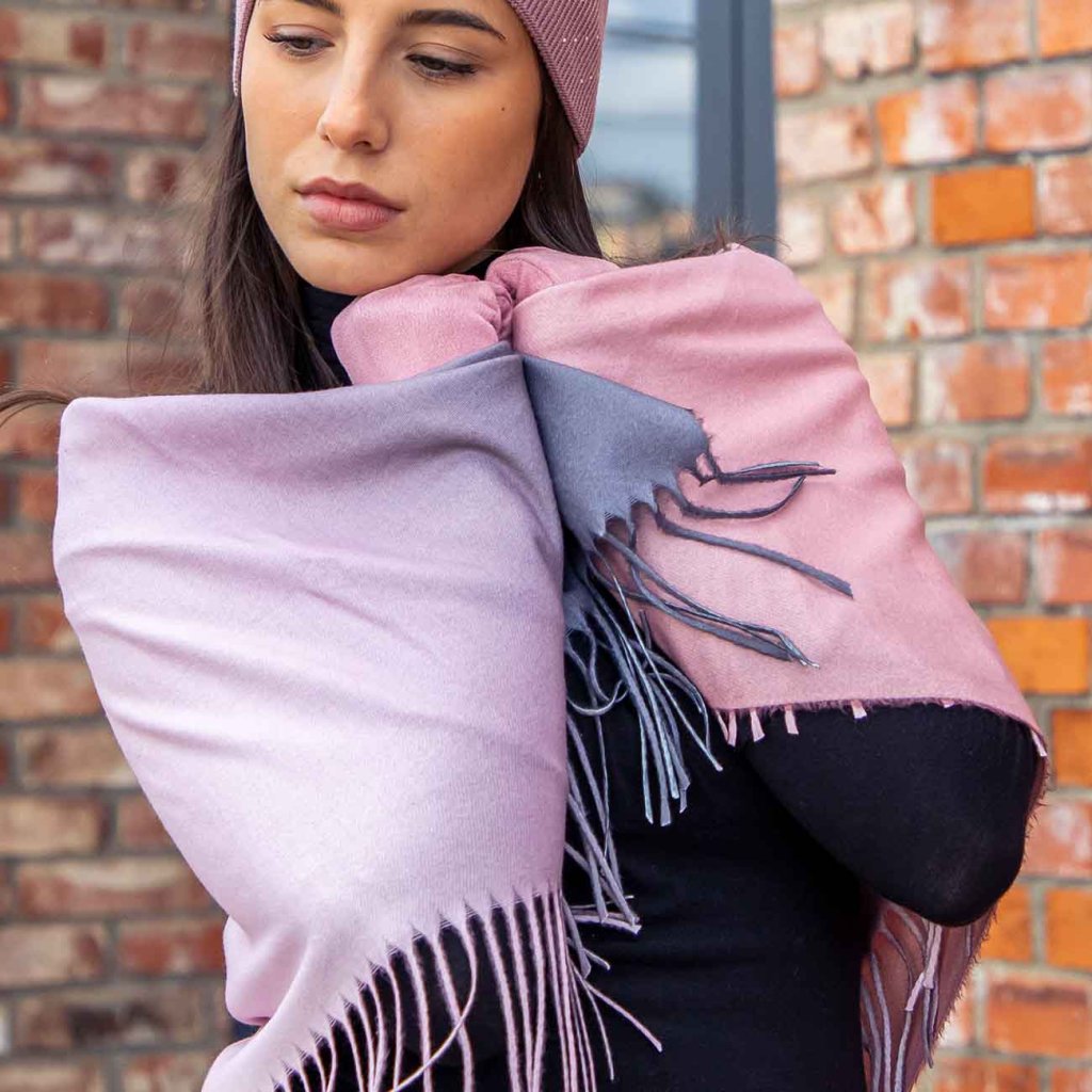 Női meleg sál, szürke-rózsaszín 7200800-4