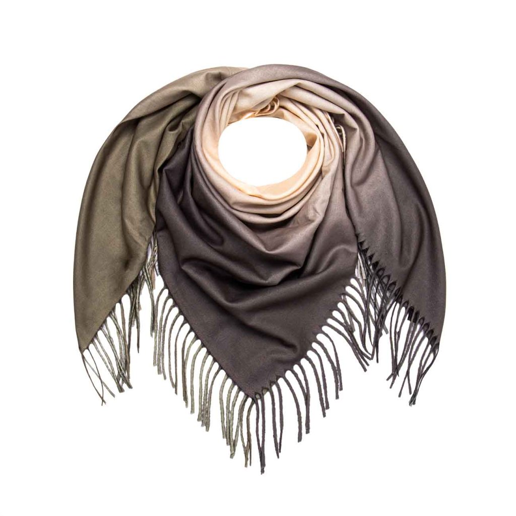 Elegáns ombré hatású sál – bézs, szürke, olíva