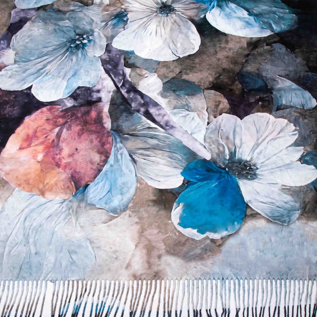 Elegáns női sál virágmintával – kék-barna árnyalat