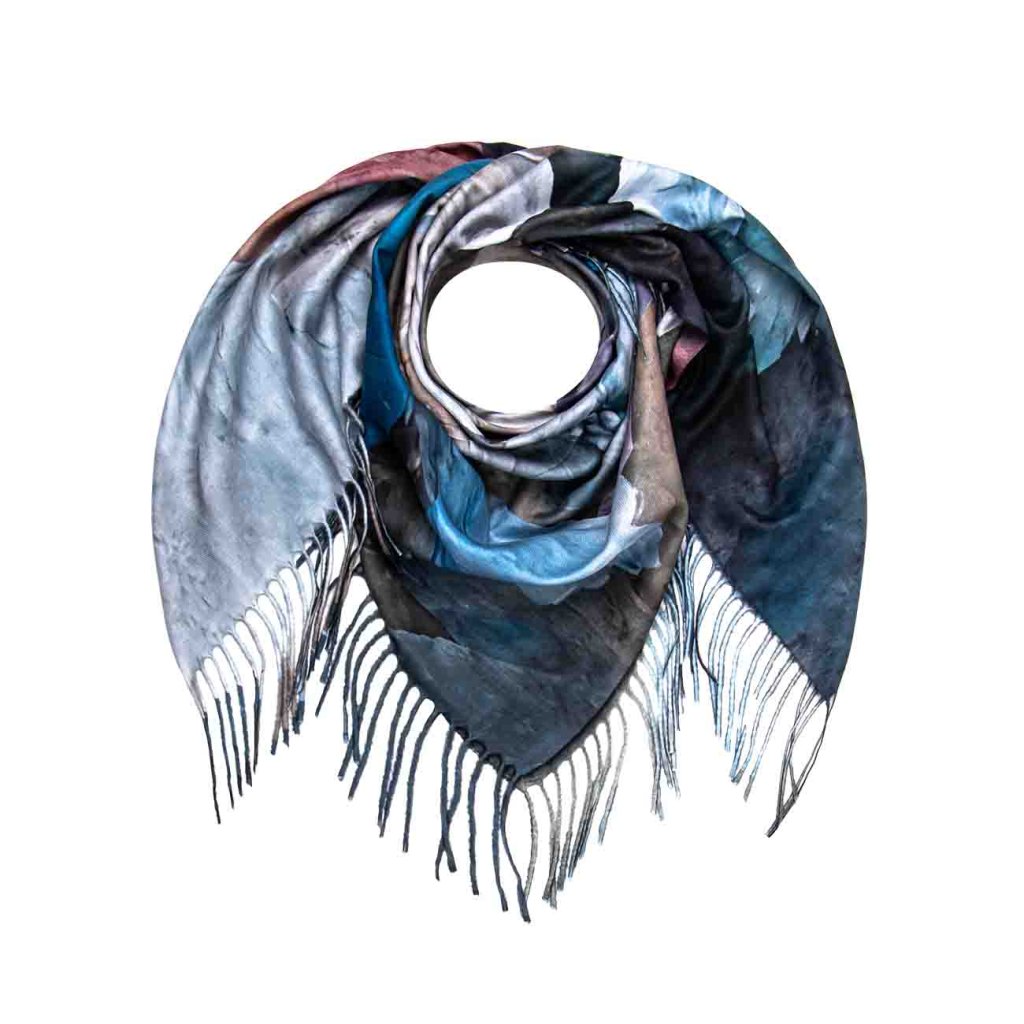 A luxus, négyzet alakú sál finom, kék, fehér és barna árnyalatú virágmintával friss és elegáns megjelenést kölcsönöz öltözékének. A finom színátmenetek és a részletesen kidolgozott virágmotívum eredeti megjelenést kölcsönöz a sálnak. A finom anyagnak köszönhetően kellemes tapintású, meleg és egyben könnyű, így egész évben viselheti. A szegélyt díszes rojtok díszítik, amelyek kiemelik stílusos karakterét.
