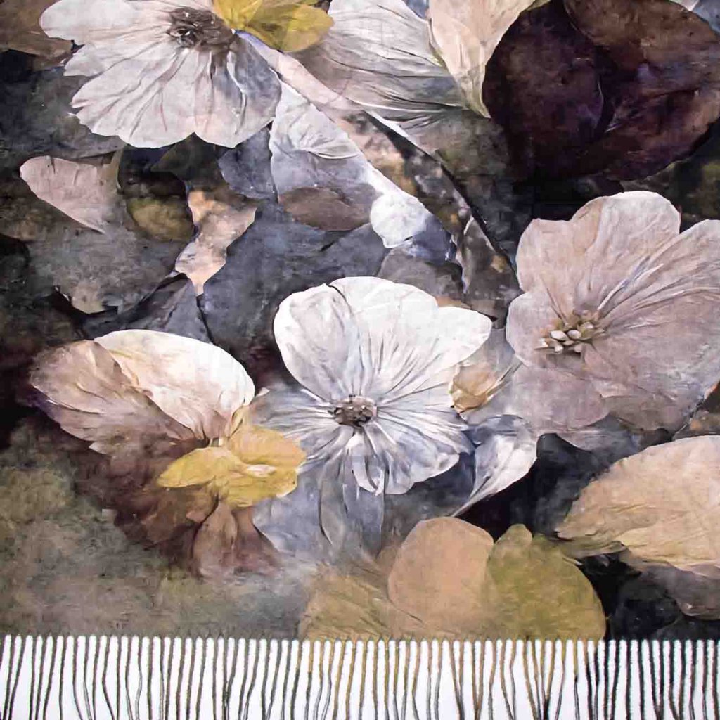 A luxus, négyzet alakú sál finom virágmintával, szürke, fehér, krémszínű és sárga árnyalatokban kifinomultságot és finom eleganciát kölcsönöz öltözékének. A finom színátmenetek és a részletesen kidolgozott virágmotívum eredeti és időtálló hatást kelt. A finom anyagnak köszönhetően a sál kellemes tapintású, meleg és egyben könnyű, így tökéletes az egész éves viselésre. A szegélyt díszes rojtok zárják, amelyek kiemelik stílusos megjelenését.