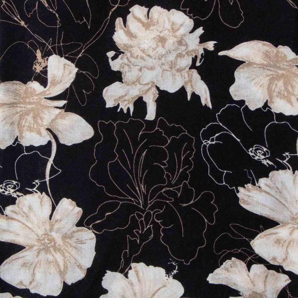 Ez az időtlen női sál művészien megkomponált virágmintával elegáns és kifinomult megjelenést kölcsönöz minden öltözéknek. A finom viszkóz, a természetes gyapjúval kombinálva, puha tapintást, kellemes meleget és egész napos kényelmes viseletet biztosít. A sál könnyű, légáteresztő és ugyanakkor kellően meleg, ideális a hűvösebb évszakokra. Méretének köszönhetően sokféleképpen viselheti – lazán a nyakában, vállára vetve, vagy kabátja stílusos kiegészítéseként.